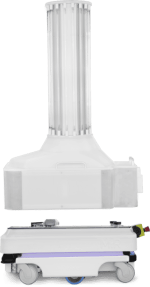 Esta nova solução permite o reforço nas unidades de saúde no combate à pandemia originada pelo COVID19 e representa a tecnologia mais avançada. Trata-se de uma plataforma totalmente autónoma e é capaz de auxiliar as rotinas normais de limpeza ao emitir luz ultravioleta concentrada em superfícies de contacto elevado, médio e baixo.